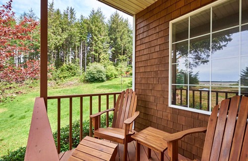 Come enjoy a quiet and romantic stay in our home on the Beautiful Oregon Coast. Nestled amongst tall trees on the edge of an estuary overlooking Netarts Bay, our home is a bird watchers paradise. From our front porch, we routinely see great blue herons, bald eagles, egrets, and ducks of all kinds that visit our estuary. A herd of at least 20 elk often pass directly by our property. You can take a short walk down our driveway to the bay and take in a view of virtually untouched beauty. You can hear the ocean at night and the frogs will sing to you as you relax in our hot tub that overlooks the estuary and bay.