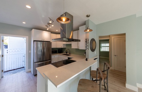 Amazing outdoor space makes this home standout from the rest. Brand new HEATED pool, outdoor shower, deck and outdoor living areas. Two (2) bedrooms and one (1) bathroom is just perfect for easy Florida Keys living. Drop your bags off and grab your drink and sit by the pool and just feel the pressures of life slip away. The property is completely fenced-in for your privacy or to keep your little ones safe. Just a quick bike ride to old town and all that Key West has to offer. Inside you will find a beautiful kitchen with hardwood white shaker style cabinet, stainless appliances and Sea Glass backsplash. High ceilings makes this cottage feel perfect. We look forward to you enjoying this private piece of paradise! Pet Friendly!!!