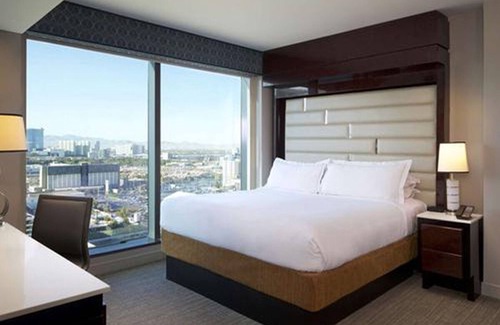 Stay in an upscale place that’s near everything. The Formula One Race track in Las Vegas passes right in front of the hotel. Centum+ Member is helping friends get a front row seat from the Luxury Penthouse class rooms (pink rooms from the 50-56 floors Strip Side). Be part of history as the inaugural race takes place by staying in this Three Bedroom Three King Suite. Suite offers a generous living room, dining area, full kitchen w/cooktop, microwave, refrigerator, and washer/dryer.