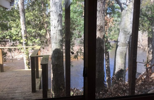Beautiful cabin property located between Ludington and Baldwin on the Big South branch of the Pere Marquette river. We have added the home next door as a 3 BR rental also, VRBO ID 9368622, search Branch Township, MI and look for the description that says "Beautiful Cabin with Gorgeous Riverbend View". Or, Google "VRBO Property HA 9368622" and look for "beautiful Cabin with Gorgeous Riverbend View". Come for the great fishing, quiet relaxation, kayaking or tubing down the river, or hiking in nearby Manistee National Forest trails. This cabin is situated literally on the bank of the Pere Marquette River. It has gorgeous views of the river and is conveniently located approximately 30 min from Ludington or 1hour from Muskegon. Popular destinations all within an hour's drive include Pentwater, Hart and the Silver Lake Sand Dunes, Ludington and Manistee. Rockers on the porch are a great spot for relaxing or having a cocktail while viewing the outdoors and river, or sit at the fire pit in the evening and roast marshmallows. Lots of wildlife including eagles, deer, blue herons, salmon, and many wild birds to enjoy. Also a great spot for hunters and fishermen looking for comfortable, modern lodging while enjoying the great outdoors. Conveniently located 1 mile from a local store, bar, and restaurant.