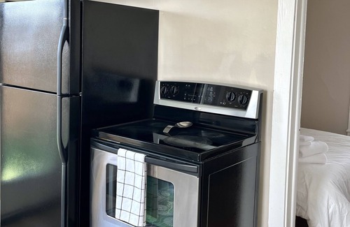 Comfortable and beautifully downstairs unit in the heart of Findlay! Able to sleep up to six people, this lower unit of a duplex is located right off Tiffin Ave. in the middle of town. Large wrap around porch, amazing natural light and comfortable accommodations will make you feel right at home. Two bedrooms and a pull-out couch, one large bathroom, spacious and open living/dining area with a large kitchen. Coffee, Tea, filtered water and general kitchen utensils included. Tesla charger in garage!