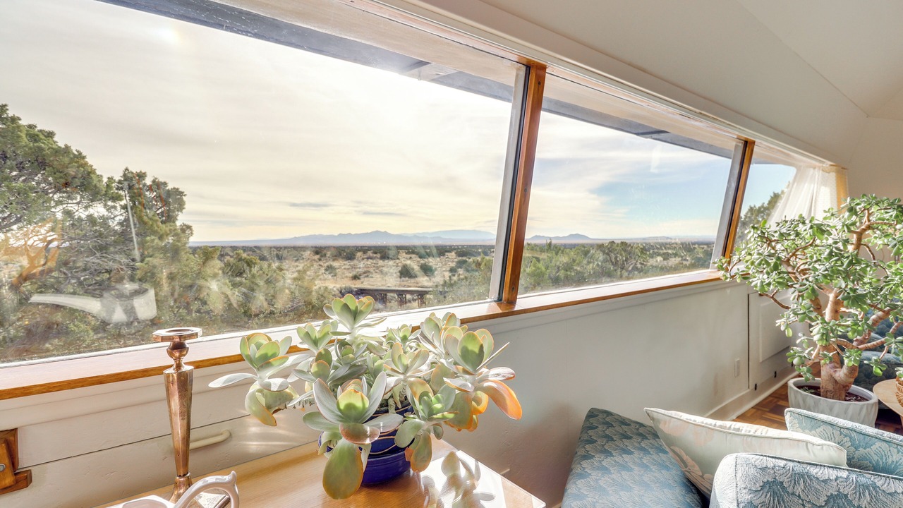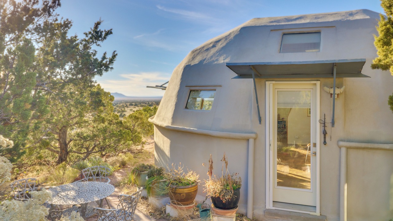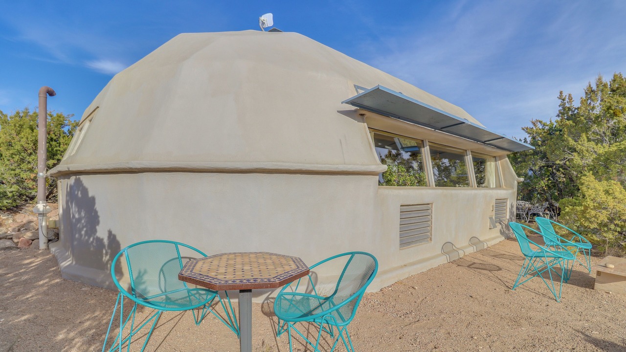 Santa Fe Geo Dome w/Trail Access & Views is located in Canoncito. Santa Fe Geo Dome w/Trail Access & Views provides accommodation, featuring Air Conditioner, Bedding/Linens, Fireplace/Heating, among other amenities. This House features Air Conditioner, Bedding/Linens, Fireplace/Heating, to make your stay a comfortable one.