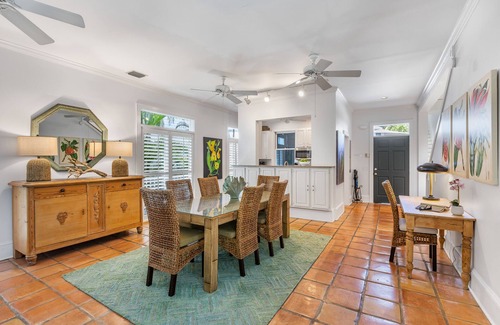 Come spoil yourself in this conveniently located two-story home tucked away on a quiet lane in the desirable gated community of historic Truman Annex. Leave your worries on the mainland and step into this timeless neighborhood which is just steps from all the Key West fun. Cozy, spacious guest rooms, cheery island decor and lush tropical palm trees swaying all around have you feeling like you are truly in Paradise.