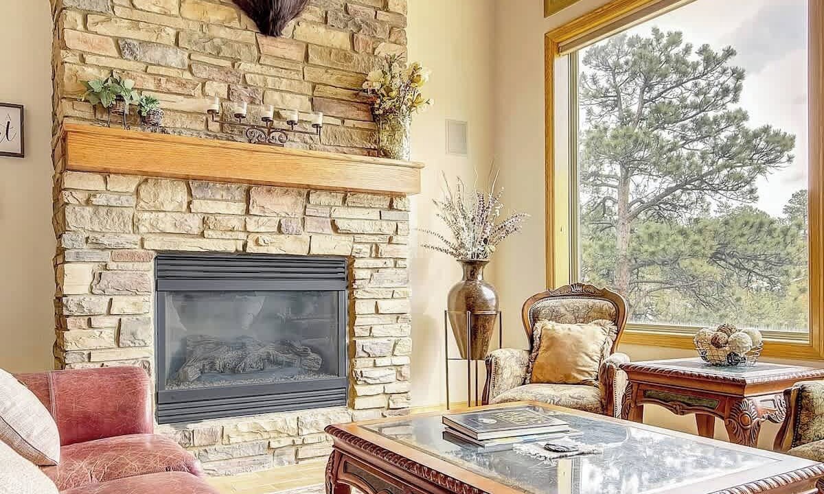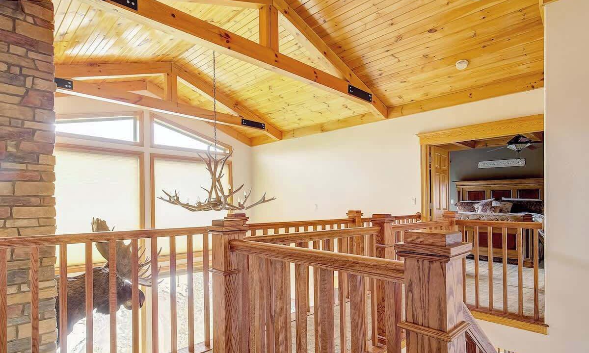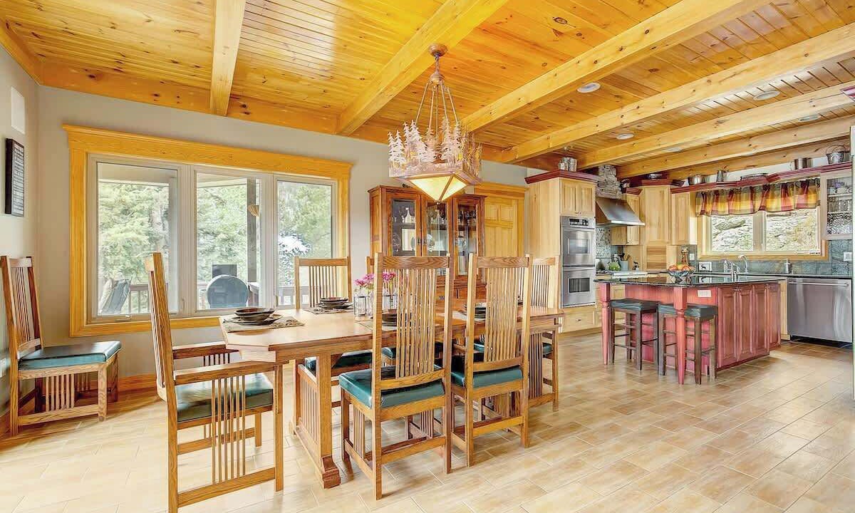This log-integrated home provides an open floor plan, radiant floor heating throughout, plenty of space for large groups with two master bedrooms, and a fully-equipped kitchen with everything you need to prepare a delicious meal. For your comfort and convenience, you’ll have access to a total of 3 TVs (smart and streaming- with cable), a gas fireplace, laptop-friendly office space, and washer/dryer.