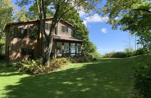 Our beautiful lake house is tucked quietly away from the main road and is only steps from the beach. We designed our 3,500 sqft house with our surroundings in mind. With a large open floor plan, floor to ceiling windows, and a view that's hard to beat, our house is perfect for families and couples looking to get away for a quiet and restful stay.