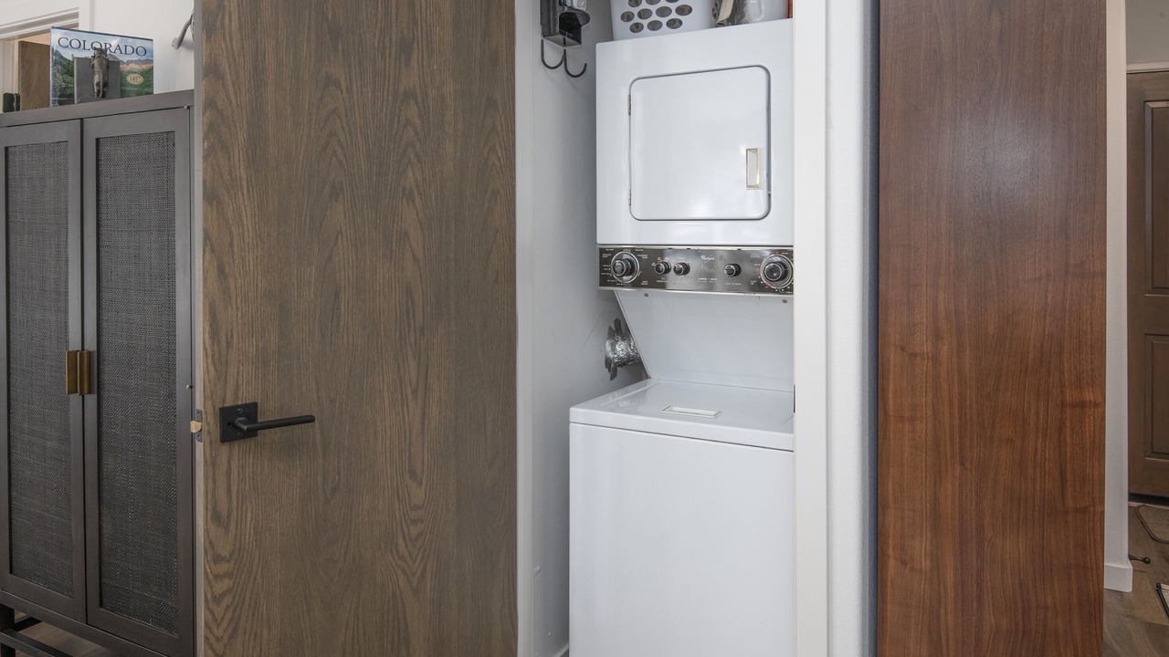 - Laundry closet w full sized washer/dryer