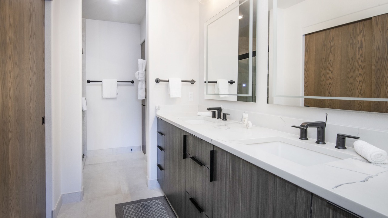 - Master w queen sized bed en-suite w shower/tub and double sinks