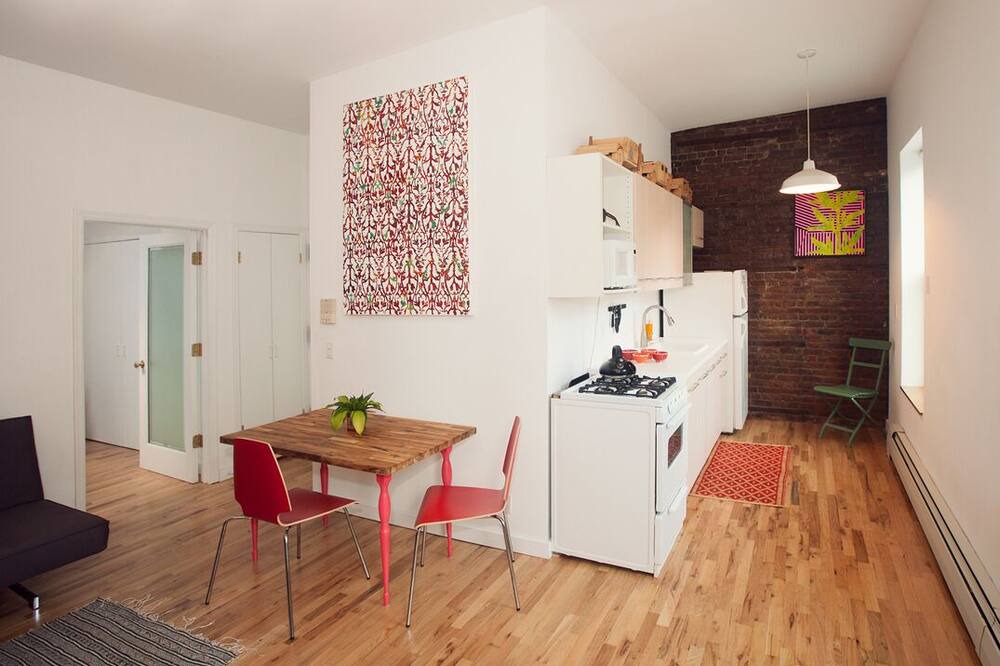 ***Full Kitchen, good linens, artwork, exposed brick