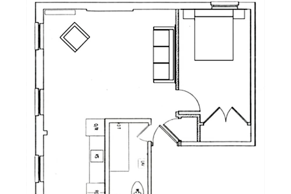 The bedroom has a queen size bed, a skylight and a view to the east. There is a queen sofa bed in the spacious living area. The large tiled bathroom has an additional storage shelves, a skylight, shower and tub. Other amenities are air conditioning, internet-ready flat screen TV, microwave, coffee-maker, ceiling fan, and all linens. The loft is located two flights up from the street.