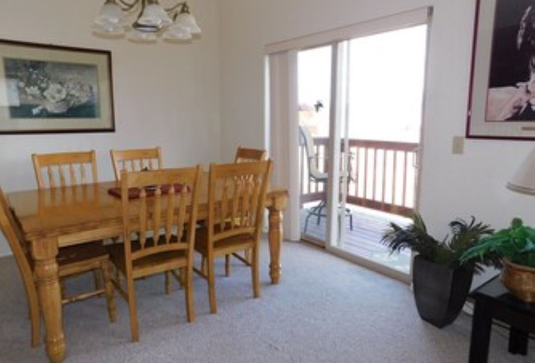 This spacious tri-level townhome is located near North Village Lake. It is close to the golf course, restaurants and more. This property has very attractive landscaping, a 2-car garage and a deck with a great view of the lake and mountains in the distance. The home features a tongue-and-groove wood cathedral ceiling with a loft overlooking the living/dining area. The lovely oak dining table seats 6.
