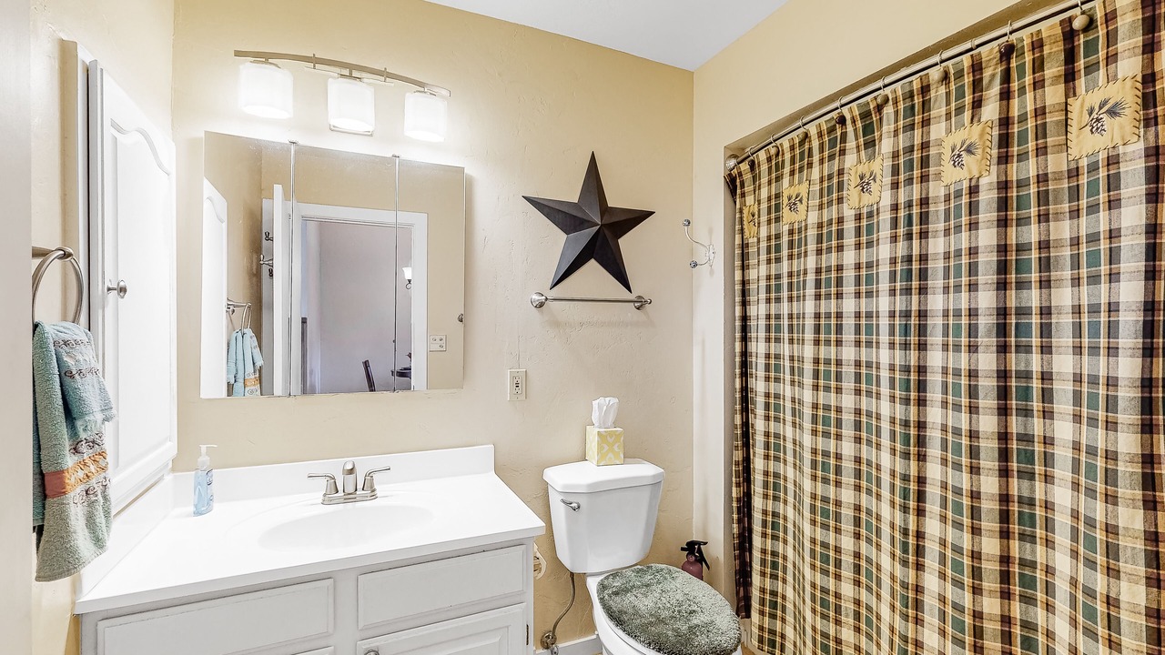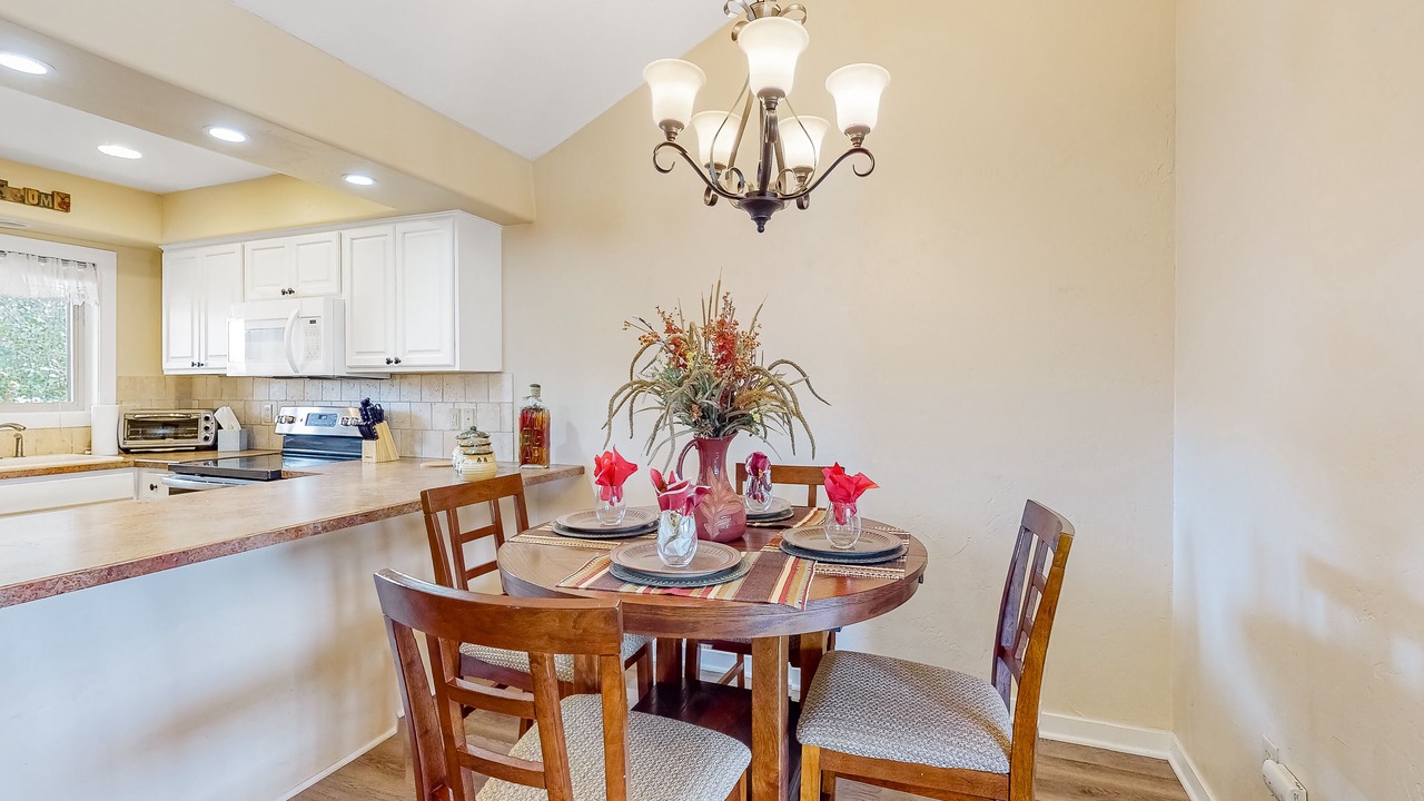 Get away from the hustle and bustle of city life and soak up some natural beauty here in Pagosa Springs! Located on a quiet street near the main drag of town, this home-away-from-home will give you the perfect mix of serenity while still being conveniently close to the best attractions in the area. When you walk into this mountain gem, you will be greeted by the full kitchen just waiting to assist in prepping delicious meals on modern appliances. The open layout leads to the quaint dining area and a lovely living room complete with vaulted ceilings, a large flatscreen TV to stream favorite shows on, and a fireplace to cozy up beside on chilly winter evenings. If you want to get a bit of fresh air, bring a warm cup of coffee out to the deck and plan out a full agenda. Whether you have come to ski, hike, or spend all day on one of the nearby lakes, this will be the perfect jumping-off point for you and yours!