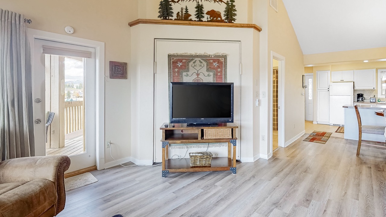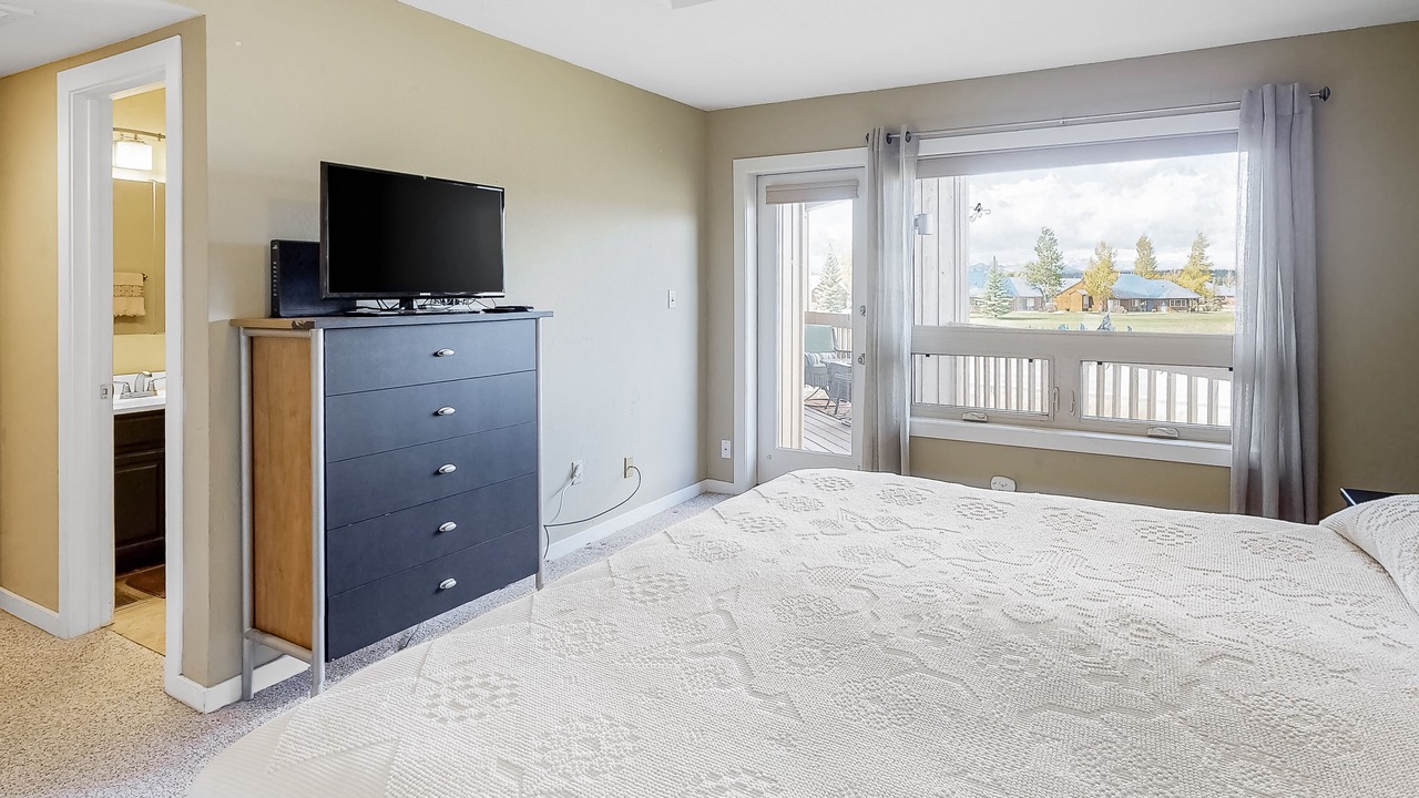 At the end of the day, sleep like a royal on the king-sized mattress in the bedroom with its own TV and access to the deck. A queen-sized Murphy bed in the living room is also a perfect place to cozy up for the night with the comfort of the fireplace bedside.