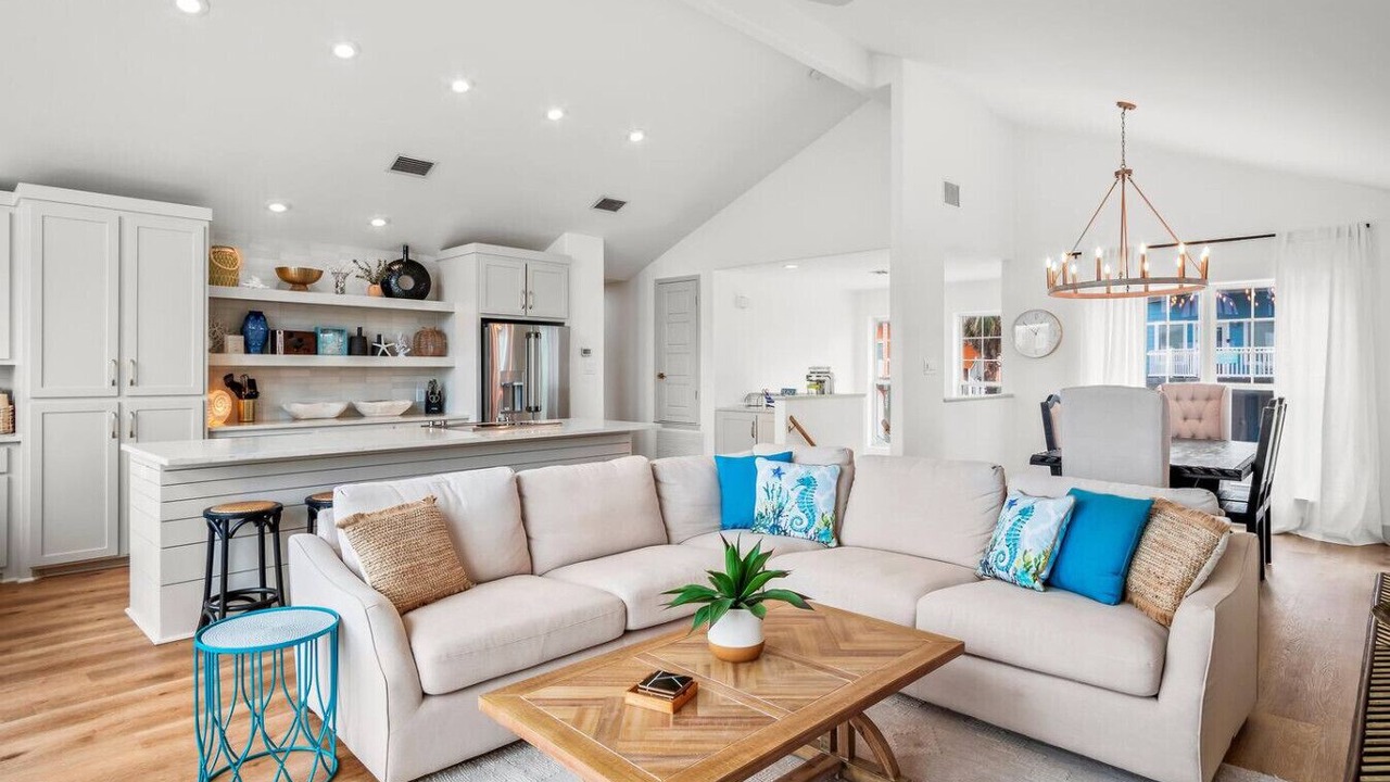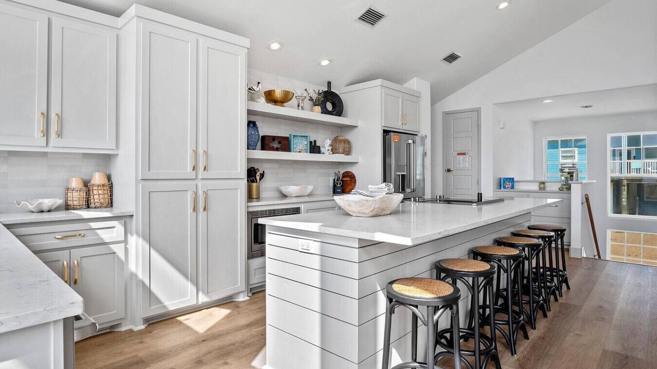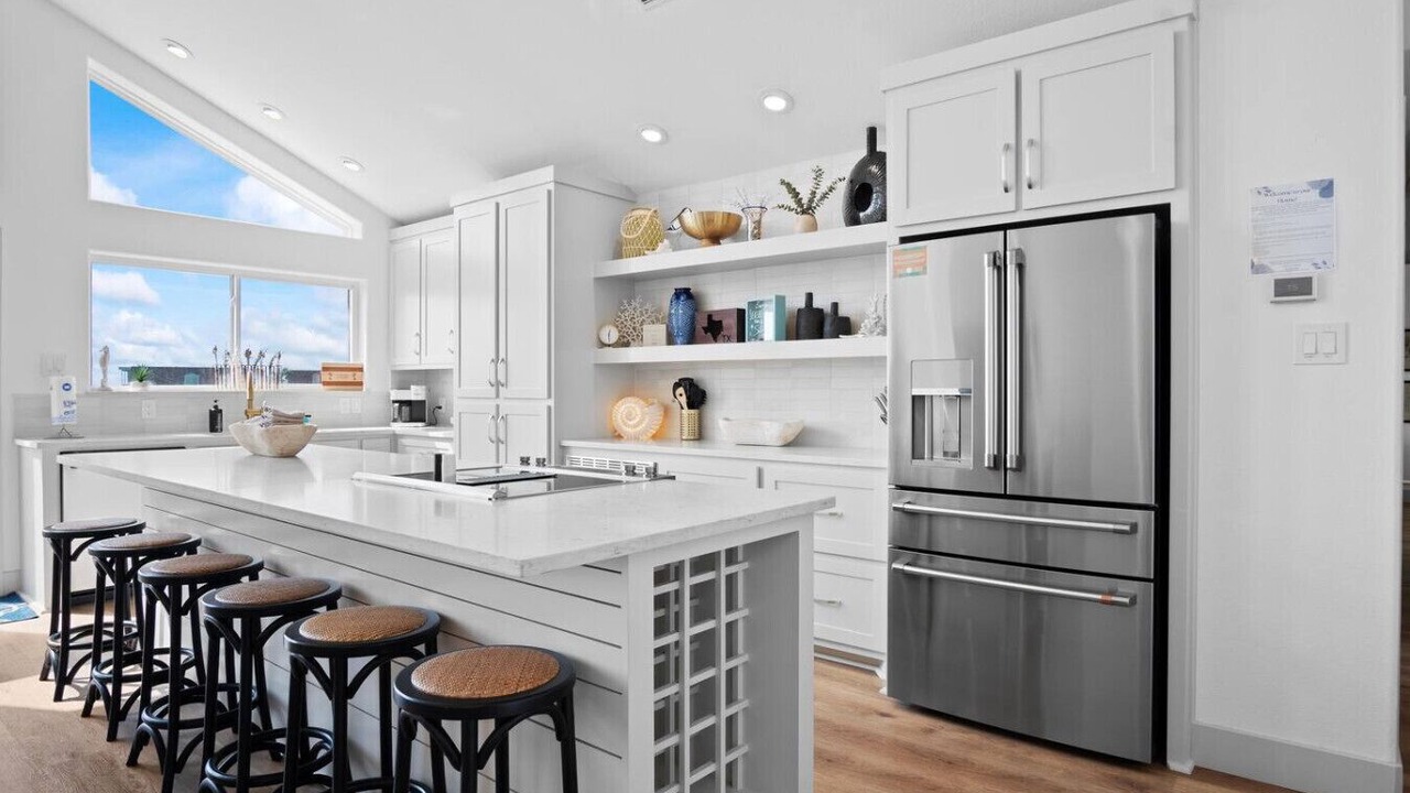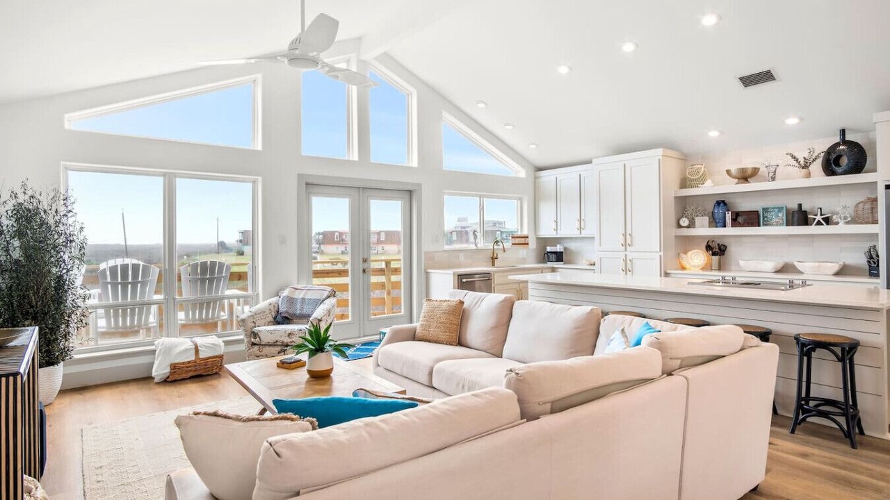 Not only is the inside of this home breath taking the outside is just as perfect. The yard has a privacy fence with artificial turf grass and a BBQ grill making it the perfect space to hangout with friends and a family. There is a private neighborhood boardwalk for this home making it a easy and short walk to the beach! This home also offers a community pool with lounge chairs for tanning and relaxing as well as a hot tub, what`s not to love? The local favorite Beach Lodge restaurant and bar is located right on the beach just around the corner, head on down for dinner or enjoy a happy hour and watch the sun set. Tan Lines and Fine Wines sleeps twelve guests and has plenty of parking.