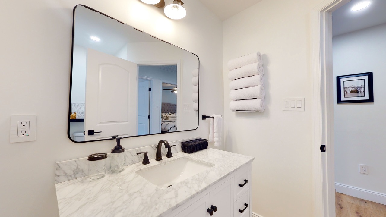 Guests will have access to the entire guest house except for a locked utility closet. The Haven is reached by going up the left side of the Y driveway on the property. There is a parking pad directly out front as well as additional parking behind.