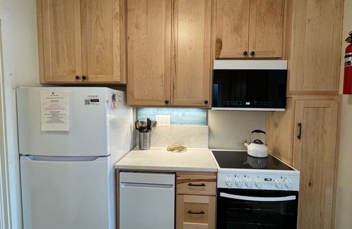 Amenities include a fully furnished kitchen, ocean view living room and dining room, HDTV/ DVD Player, Wifi, FM tuner with iPod cable. Be sure to check out our latest addition: a recently added mural painted by Oregon muralist Corie Hinton. It is a visual treat waiting for you when you open the kitchen door.