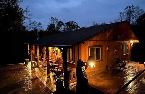 Do you like the Rustic and Romantic appeal of a beautiful cabin tucked back in the woods but want all the comforts of being close to Everything? Well, you have just found it. If you're an early riser get your coffee and grab a seat on the deck and watch the woods wake up as the sun rises. There are three fire pits for your evening enjoyment, one located on the main patio, one located behind the garage area with swings, and one at the pond. The home is 35 minutes from the Ark Encounter & 25 minutes to the Creation Museum. A short drive to Ohio or Indiana. Also 25 minutes away from CVG, if you are taking a flight into the area. Do you like the Rustic and Romantic appeal of a Cabin tucked back in the woods but want all the comforts of being close to Everything? Well, you have just found it. Get your coffee and grab a seat on the deck and watch the woods wake up as the sun rises. There are three fire pits for your evening enjoyment, one located on the main patio, one behind the garage, and one at the pond. The home is 35 minutes to the Ark Encounter & 25 minutes to the Creation Museum. Close to Idlewild Disc Golf course.