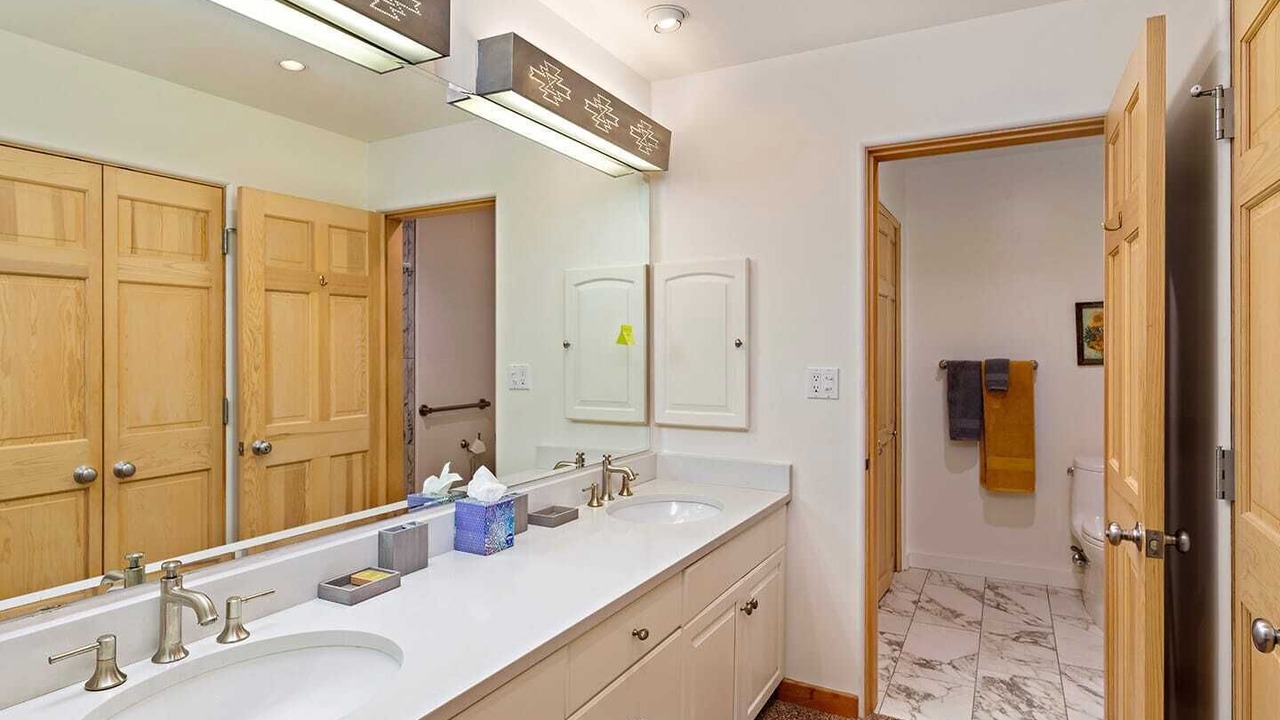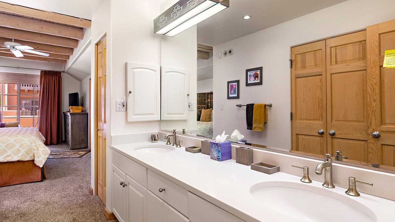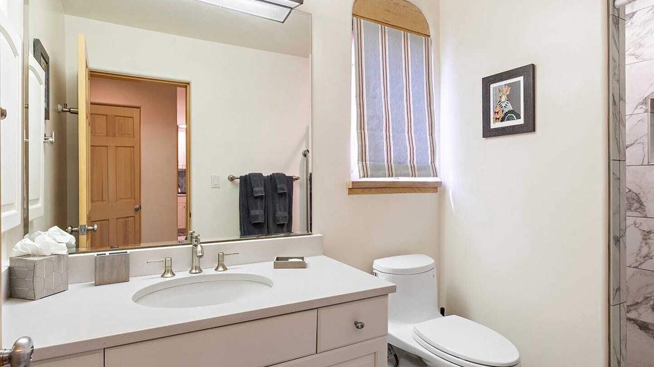 Adjacent to the second bedroom, the full bathroom provides convenience and functionality. This bathroom is equipped with a walk-in shower, making it easier for you to freshen up before heading out to discover all that Santa Fe has to offer.