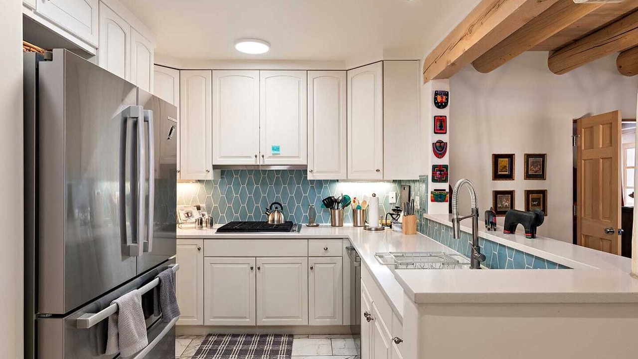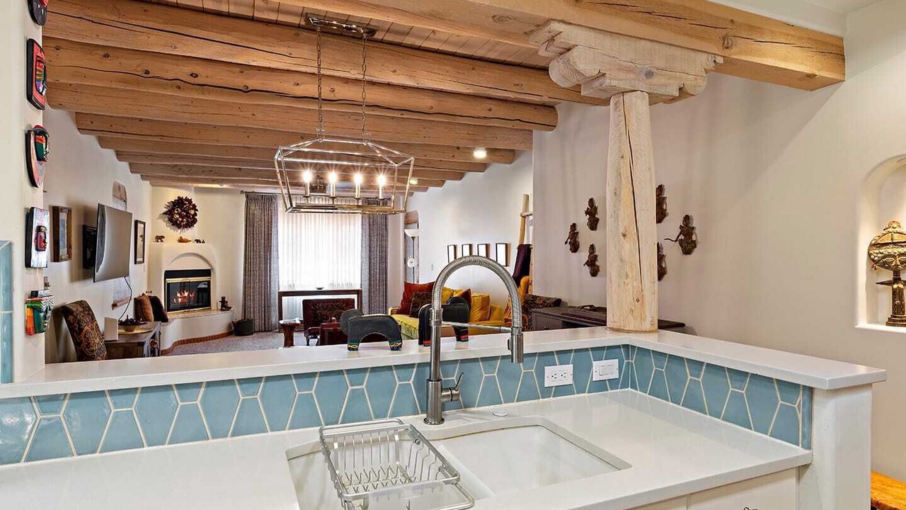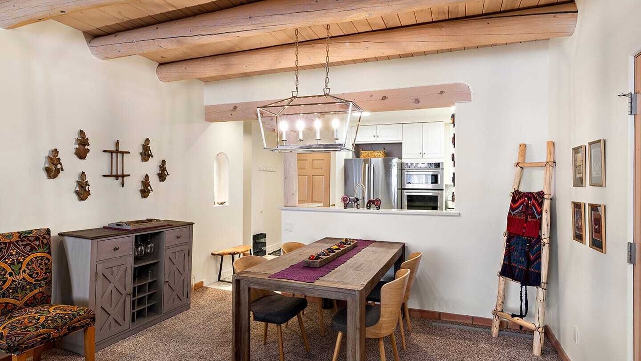 Equipped with stainless steel appliances, the kitchen invites you to unleash your culinary creativity. Prepare delicious meals with ease or simply whip up a quick breakfast before embarking on your Santa Fe adventures.