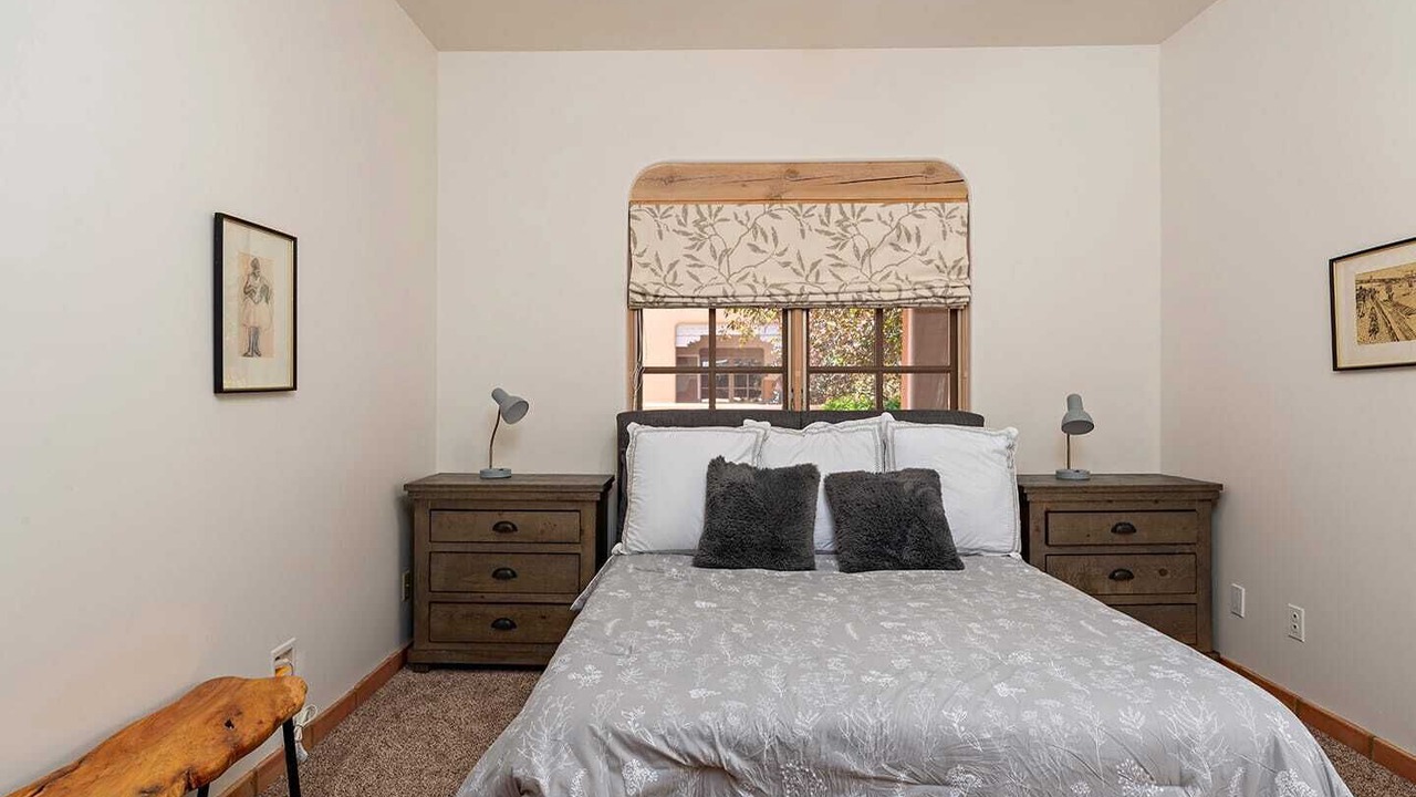 The second bedroom offers a cozy queen-sized bed, providing additional comfort and privacy for guests. Unwind in this tranquil space and recharge for another day of exploration in Santa Fe.