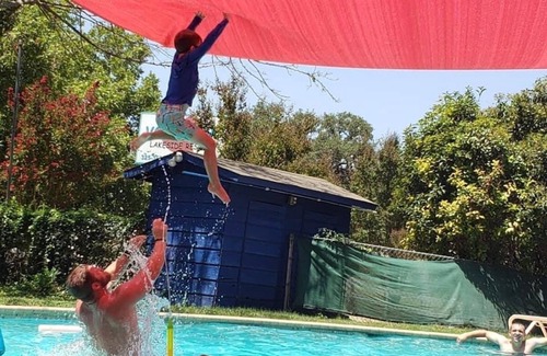 Valentinians enjoy a heart-shaped pool, swimming in the lake, boat lifts, water-toy rentals and an on-site essentials store. Plenty of chairs at the shoreline give guests a place to fish and hang out. Mature pecan trees provide a shady canopy for hammock naps. Guests make s’mores in the fire pit and borrow lawn games to play on lakeside terraces.