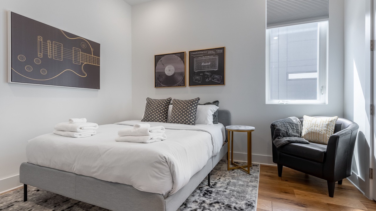 Welcome to Vinyl Vibes! Trendy, stylish, and thoughtfully curated in all the best ways, this condo stuns with its modern design and Music City highlights. From the artwork accents, to the coffee table literature, and sea foam green guitar, you'll feel the warm embrace of Nashville in this beautifully luxurious space. Stocked with everything you need, including kitchen supplies, a washer and dryer, cozy furniture, and a dreamy balcony area, the comfort level is purely divine! The location is approximately 12 minutes from Downtown, and within 5 short miles of the best restaurants in Nashville. Come on over to "The A Side" for a dreamy Nashville vacation!